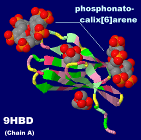 ホスホナートカリックス[6]アレーンが結合したRSLタンパク質9hbdのChain AとPDBsumデータ