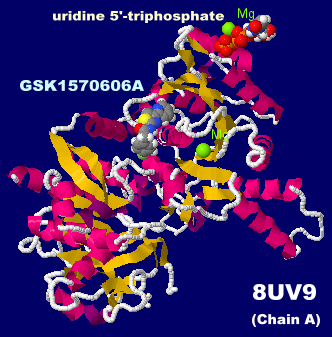 GSK1570606Aが結合した結核菌のCTPシンターゼ8uv9のChain AとPDBsumデータ