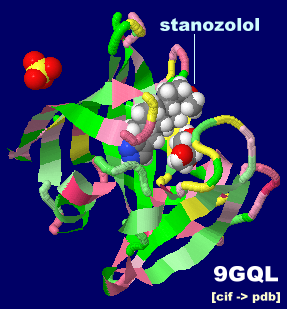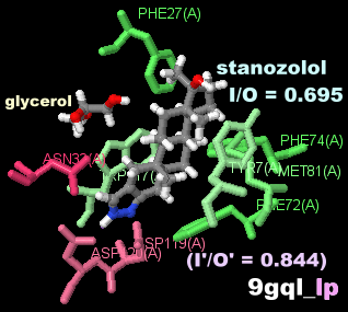 アナボリックステロイドのスタノゾロール(stanozolol)が結合したhMTH1 9gqlとPDBsumデータ