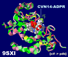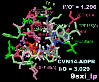 阻害剤CVN14-ADPRが結合したCD38 9sxiとPDBsumデータ