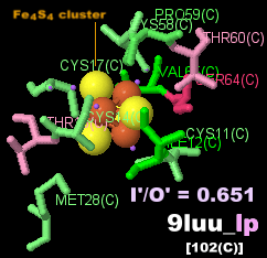7dr0のChain AとそのPDBsumデータ(鉄硫黄クラスターとβ-カロテン)