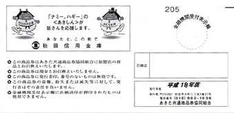 写真はあきた共通商品券協組の2006年度発行分商品券。裏には広告も掲載