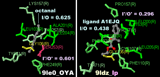 PDBsumデータ5a8e_XTK(7-メチルシアノピンドロール結合)と4bvn_P32(シアノピンドロール結合)の比較;○のメチル基のみ異なる