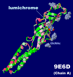 ルミクローム(ルミクロム,lumichrome)が結合したタコの化学触覚受容体CRT1 9e6dのChain AとPDBsumデータ