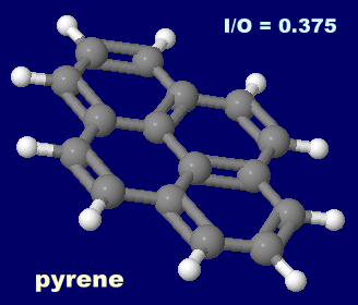 左から ピレン(pyrene),フルオランテン(fluoranthene),フェナントレン(phenanthrene)
