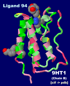 リード化合物Ligand 94が結合したブロモドメインタンパク質4(BRD4)9ht1のChain BとPDBsumデータ