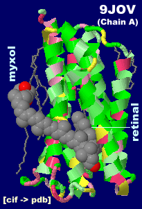 プロテオロドプシンNM-R1−ミクソール(myxol)複合体9jovのChain AとPDBsumデータ