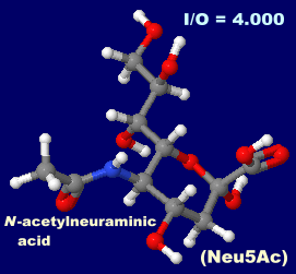 左から N-アセチルノイラミン酸(N-acetylneuraminic acid;Neu5Ac),