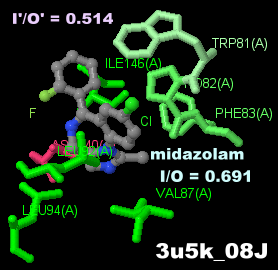 左から ミダゾラム(midazolam),同分子結合BRD4の構造3u5kのChain AとPDBsumデータ