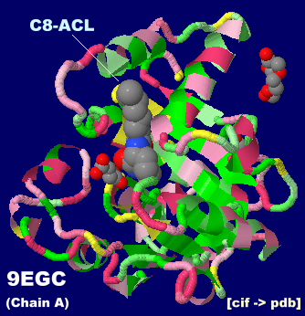 C8-ACLが結合したAclAの構造9egcのChain AとPDBsumデータ