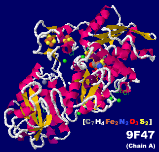 メチル補酵素Mレダクターゼ9h1lのChain G・H・IとPDBsumデータ([8Fe-9S-C] cluster)