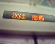 ちょっと旅行した気分になったが…毎朝ここから通ってくる人もいるのだ。それにしてもたかがLEDディスプレイごときで情報機器かね?と思ってしまうが、 裏側では走行中に各車両で同期を取って一台のコンピュータが順次駅名を表示制御しているのかな、と考えると わりと面倒なシステムが動いている気がする。
