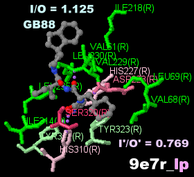 PDBsumデータ5a8e_XTK(7-メチルシアノピンドロール結合)と4bvn_P32(シアノピンドロール結合)の比較;○のメチル基のみ異なる