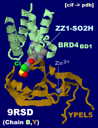 接着剤分解因子ZZ1-SO2Hが結合したBRD4BD1・YPEL5-WDR26複合体9rsdのChain B・YとPDBsumデータ