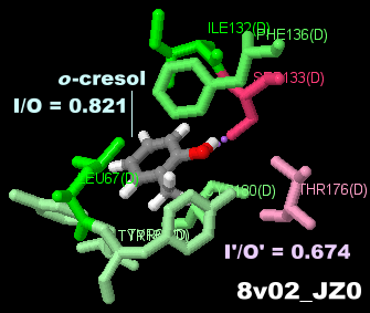 [右]染料分子を含むPDBsumデータ例 → PDBsumのLigand-SITE情報と有機性・無機性