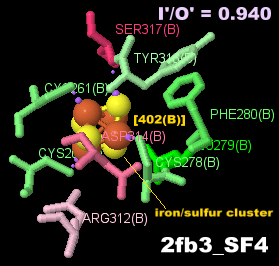 鉄硫黄クラスターが結合したモリブデン補因子生合成タンパク質A(MoaA)2fb3のChain BとPDBsumデータ