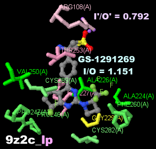 阻害剤GS-1291269が結合したケトヘキソキナーゼ(KHK)9z2cのChain AとPDBsumデータ