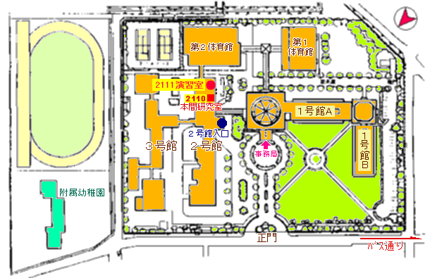 JR新潟駅前から中央郵便局まで行き(徒歩約5分),『明石1丁目(中央郵便局前)』バス停で新潟交通バス「新発田方面行き」に乗車して,『女子短大前』(新潟駅から約20分)で下車,徒歩約3分