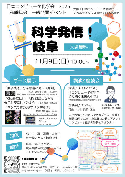 ◎講師の山本典史先生は日本コンピュータ化学会@サイエンスアゴラ2022(2022/11/05-06,テレコムセンタービル 5F)にもブース出展されました(参加事前登録必要)。